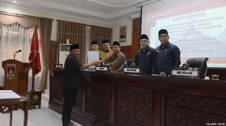 BUKITTINGGI (14/7/2025) - Dewan Perwakilan Rakyat Daerah (DPRD) bersama Pemerintah Kota Bukittinggi menyetujui Rancangan Peraturan Daerah (Raperda) Pertanggungjawaban Pelaksanaan APBD (PPA) Tahun 2024 jadi peraturan daerah (Perda).