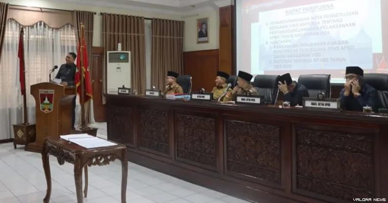 Agenda tersebut meliputi persetujuan Raperda PPA Tahun 2024, penyampaian Kebijakan Umum Prioritas Anggaran dan Prioritas serta Plafon Anggaran Sementara (KUPA-PPAS) Perubahan APBD Tahun 2025 serta pembahasan rancangan awal (Ranwal) Raperda Rencana Pembangunan Jangka Menengah Daerah (RPJMD) 2025-2029.