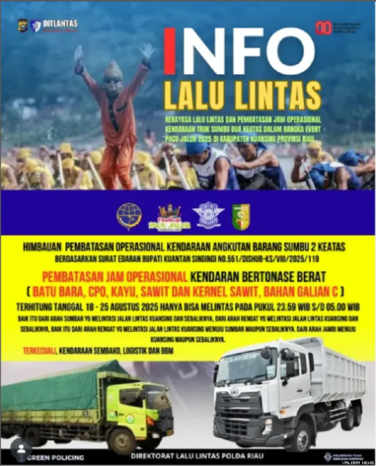 Penyediaan kantong parkir ini, merupakan langkah proaktif Ditlantas Polda Riau untuk menjamin kelancaran dan ketertiban selama perhelatan akbar Festival Pacu Jalur 2025 di Tepian Narosa, Teluk Kuantan yang akan dibuka hari ini.